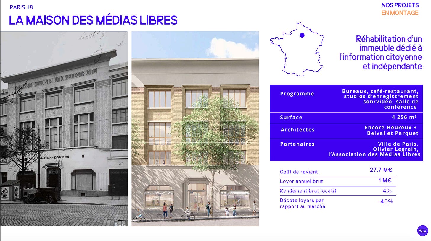 Une ancien bâtiment EDF à Paris qui va être réhabilitée en un tiers-lieu qui accueillera 80 médias libres, ainsi qu’un café resto, des studios d’enregistrement, des salles de conférences…
